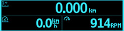 | Valmiina lähtöön; samalla näkyvissä matka, nopeus sekä moottorin kierrosluku | ![]() |