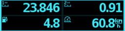 ![]() | Kaksi eri matkaa, jäljellä oleva polttoainemäärä sekä ajonopeus |